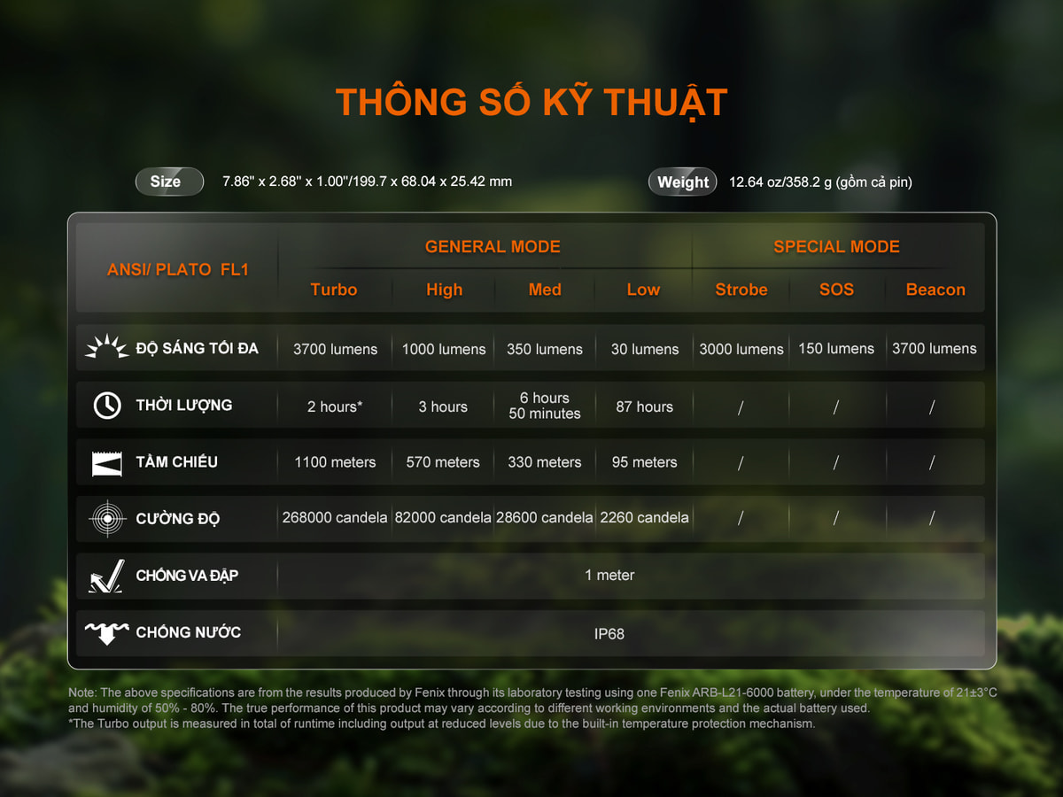 - Chỉ dùng pin sạc Fenix ARB-L21 Series.