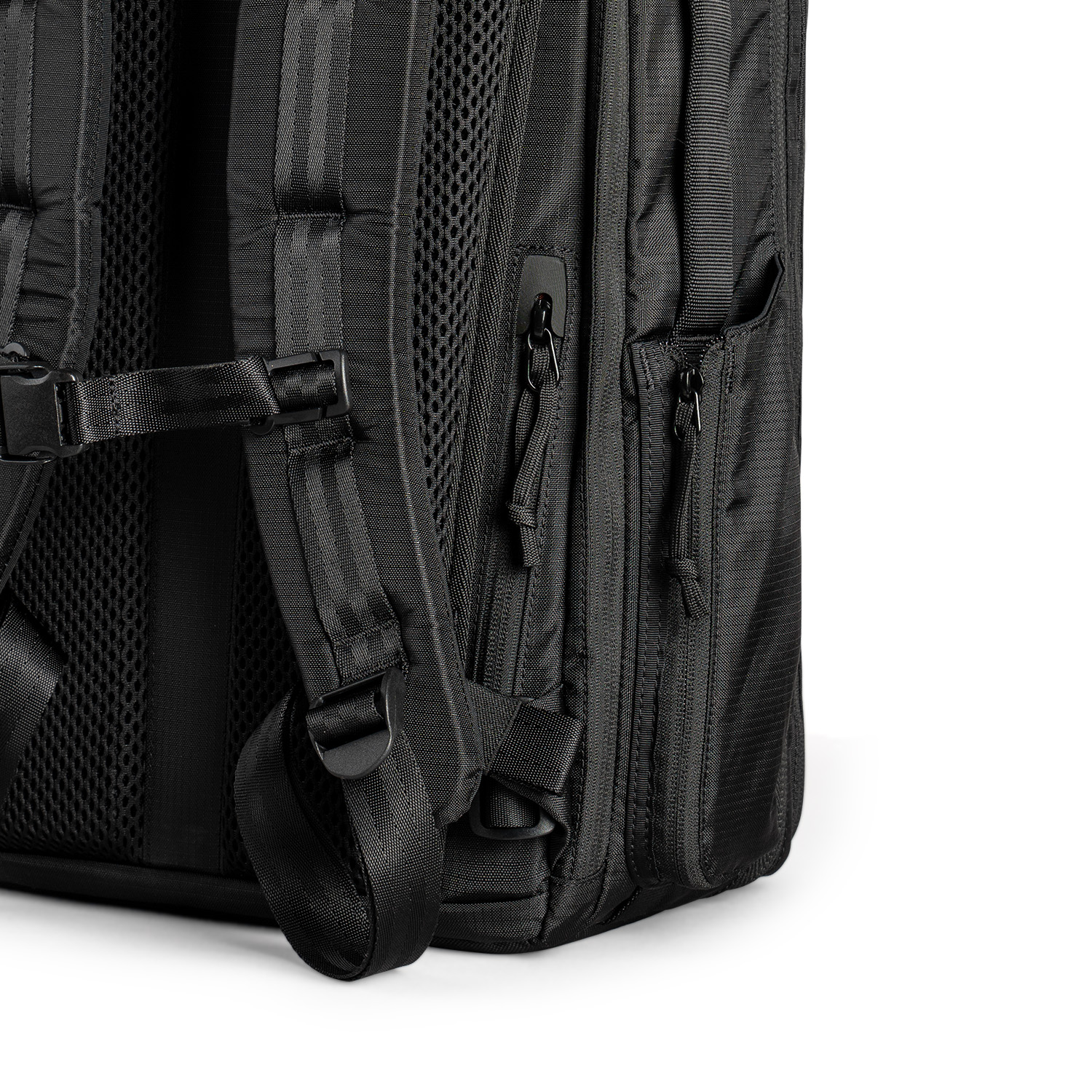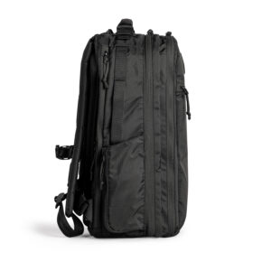 - Bên trái (phía bên trái của người dùng khi đeo ba lô): Một ngăn đựng máy tính xách tay có khóa kéo (phù hợp với Macbook 15 inch) kết nối với ngăn chính.