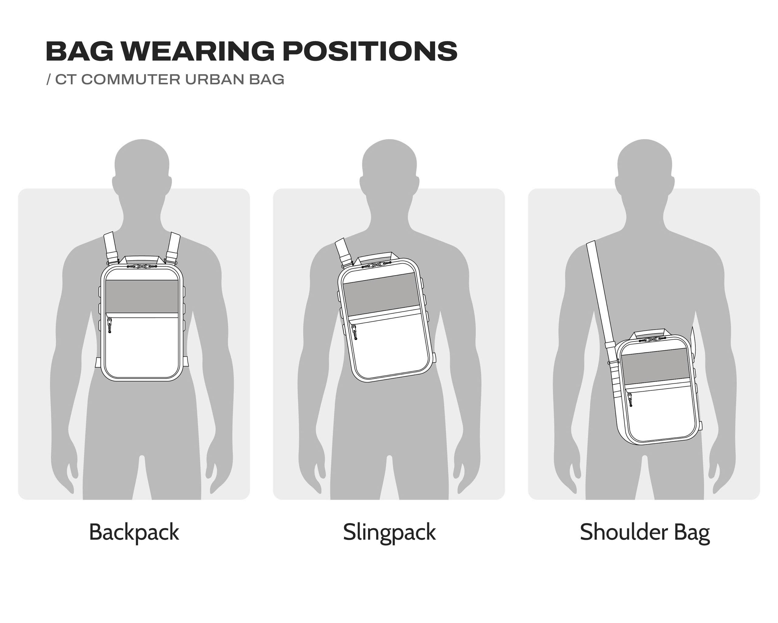 Sản phẩm có thể sử dụng với 3 tư thế đeo rất linh hoạt: đeo 2 vai (Backpack), đeo 1 vai (Slingpack) hoặc đeo chéo (Shoulder Bag)