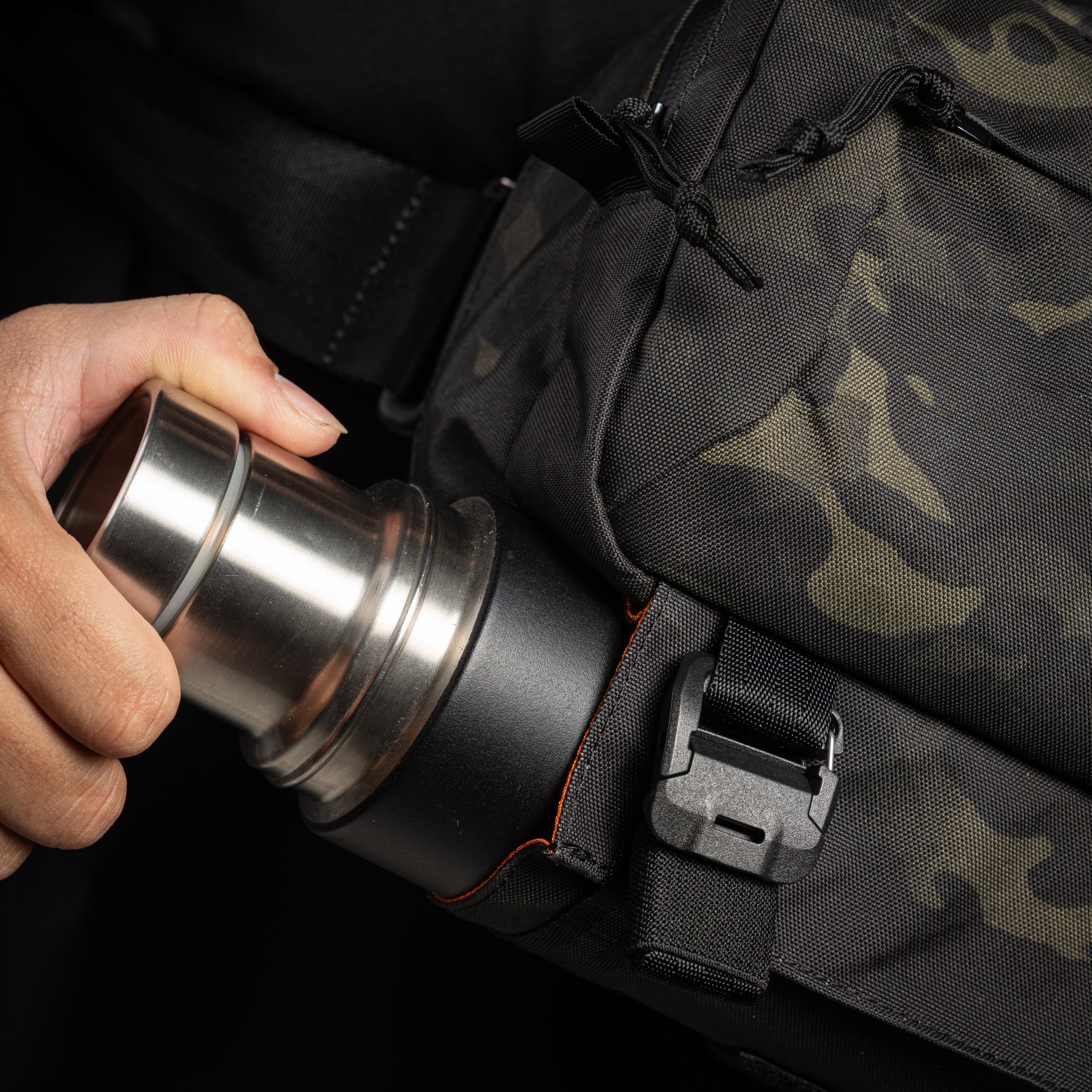 • Ngăn đựng bình nước, dù ở phía dưới đáy, có dây cố định, đai thu gọn.