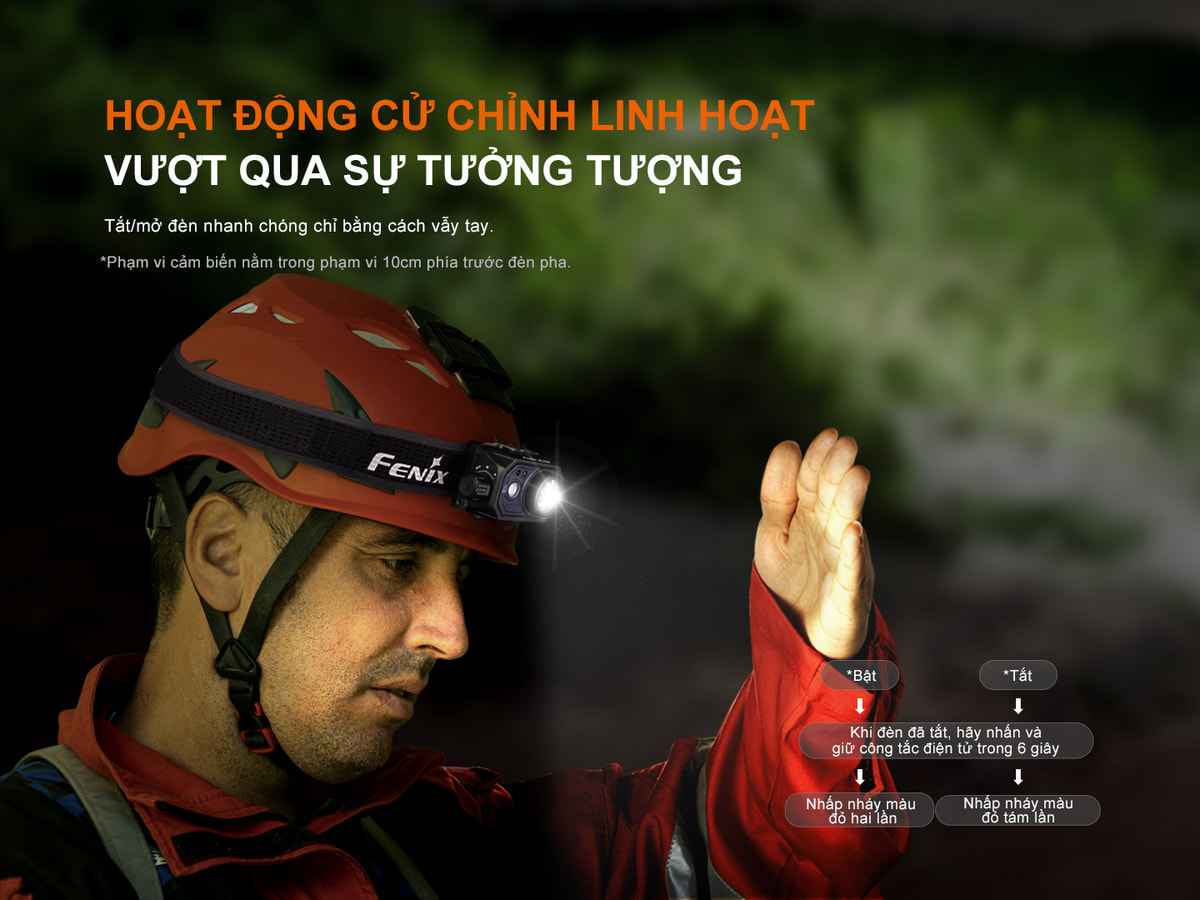 Với tính năng điều khiển bằng cảm biến cử chỉ, Fenix HL45R có thể bật hoặc tắt đèn chỉ bằng thao tác vẫy tay.