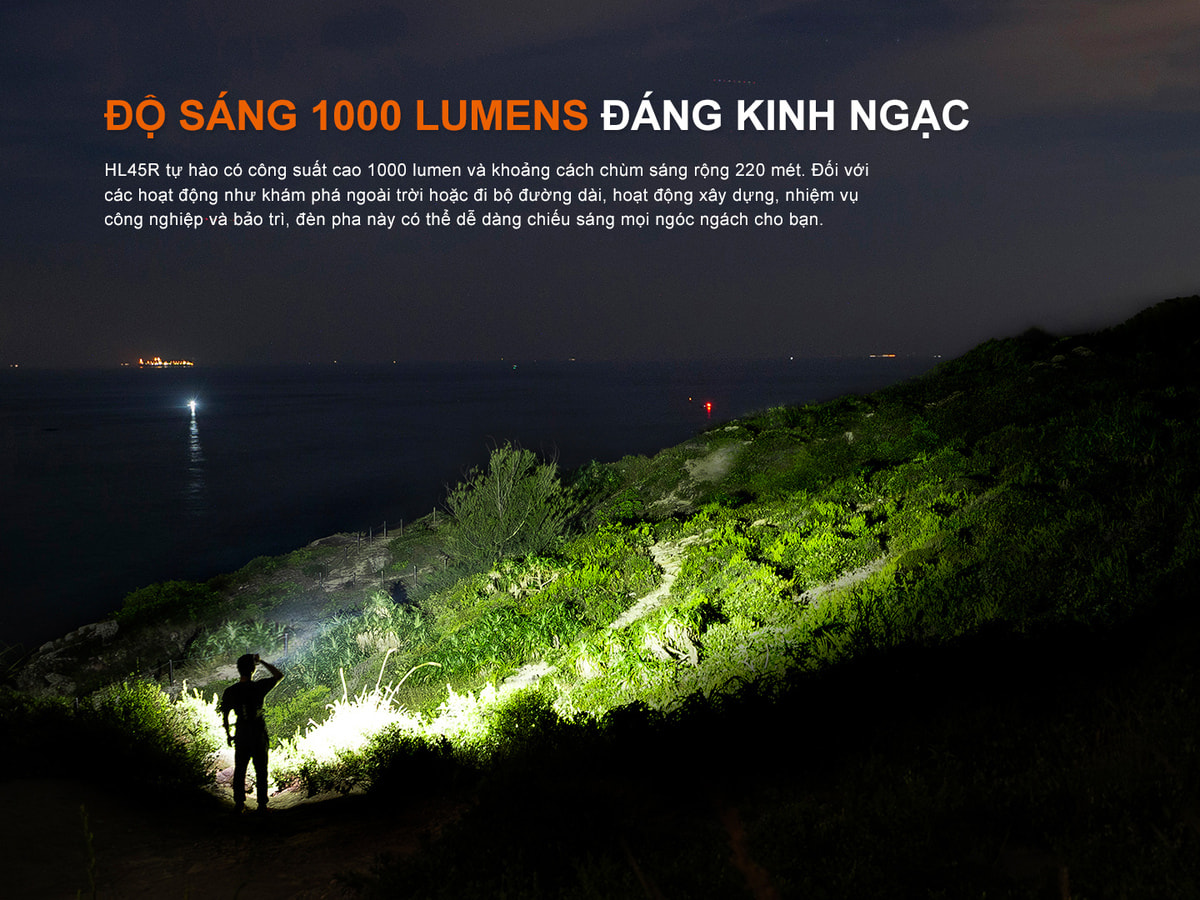 Fenix HL45R có công suất tối đa 1000 lumens và tầm chiếu xa đạt 220 mét.