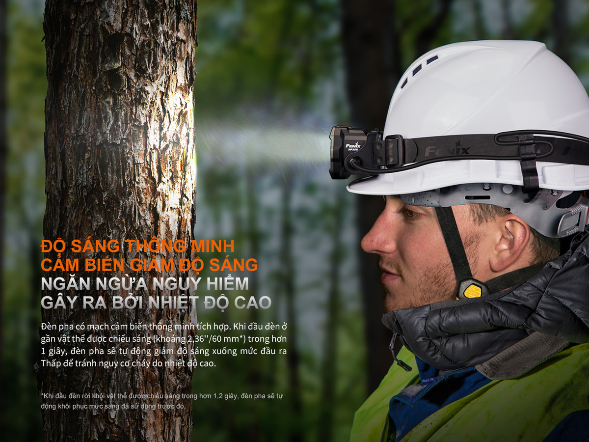 Đèn pin Fenix HP35R có cảm biến tiện cận, đèn tự giảm độ sáng về mức thấp khi đèn gần với vật cản, đảm bảo an toàn khi sử dụng không bị bỏng hay gây cháy túi/balo khi đèn vô tình kích hoạt.