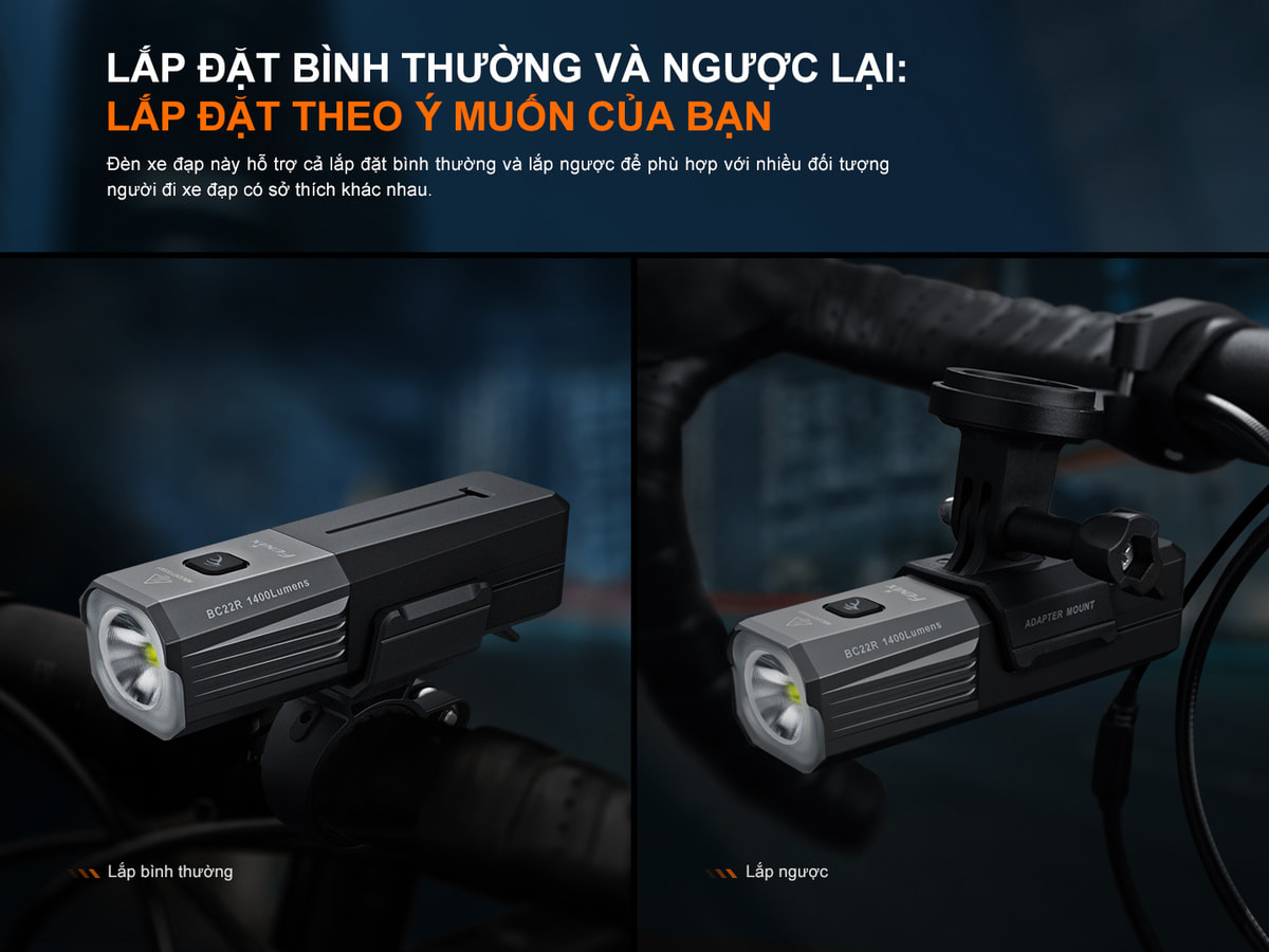 Fenix BC22R hướng đến cho các nhu cầu chiếu sáng khi di chuyển bằng xe đạp, hoặc trợ sáng cho xe máy… với kích thước gọn nhẹ và thao tác điều khiển đơn giản.