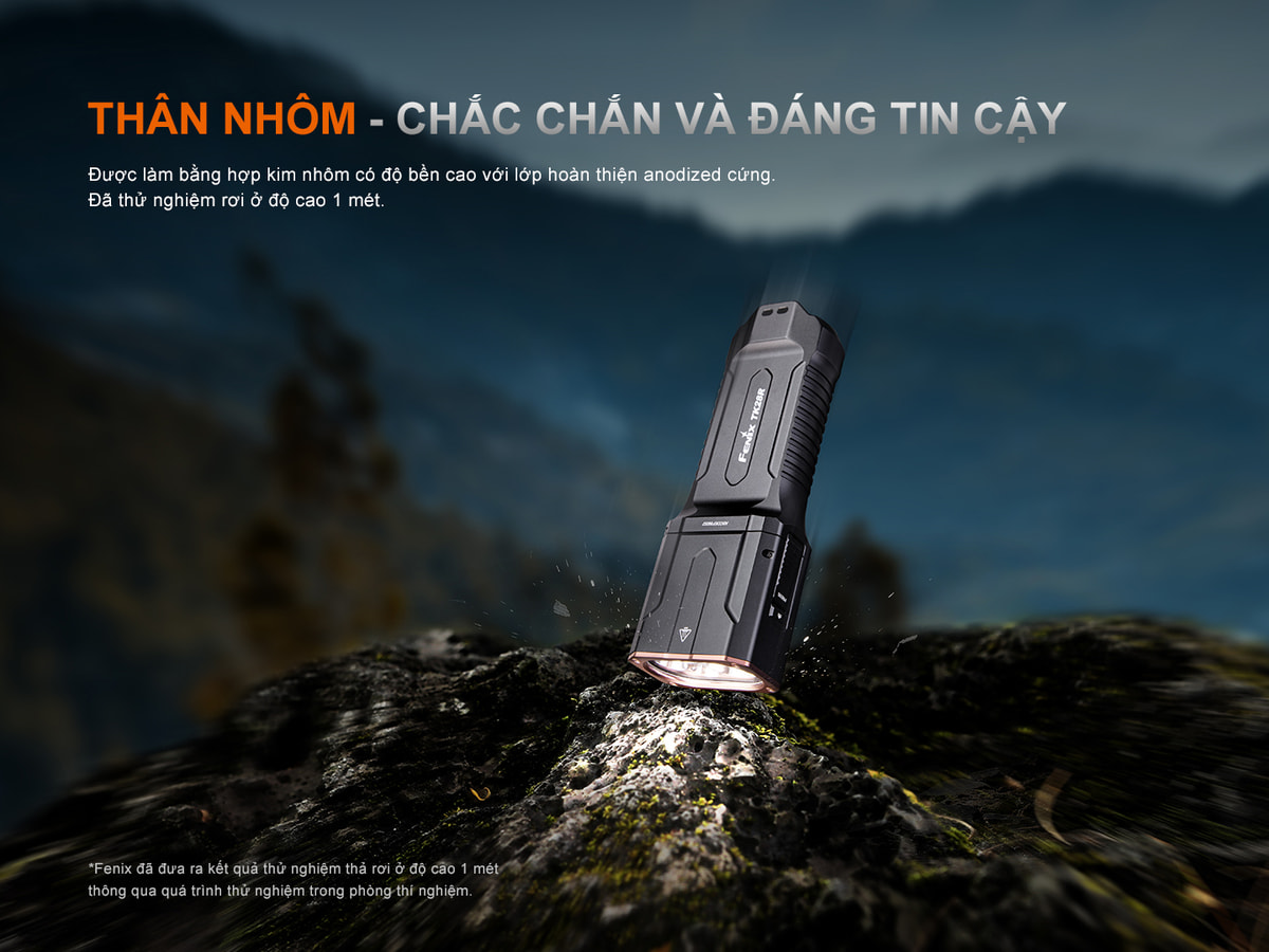 Toàn bộ thân đèn được chế tạo từ hợp kim nhôm hàng không A6061-T6, hoàn thiện bằng lớp anodized HAIII chống mài mòn, chịu va đập ở độ cao 1 mét, đạt chuẩn chống nước và bụi IP68.