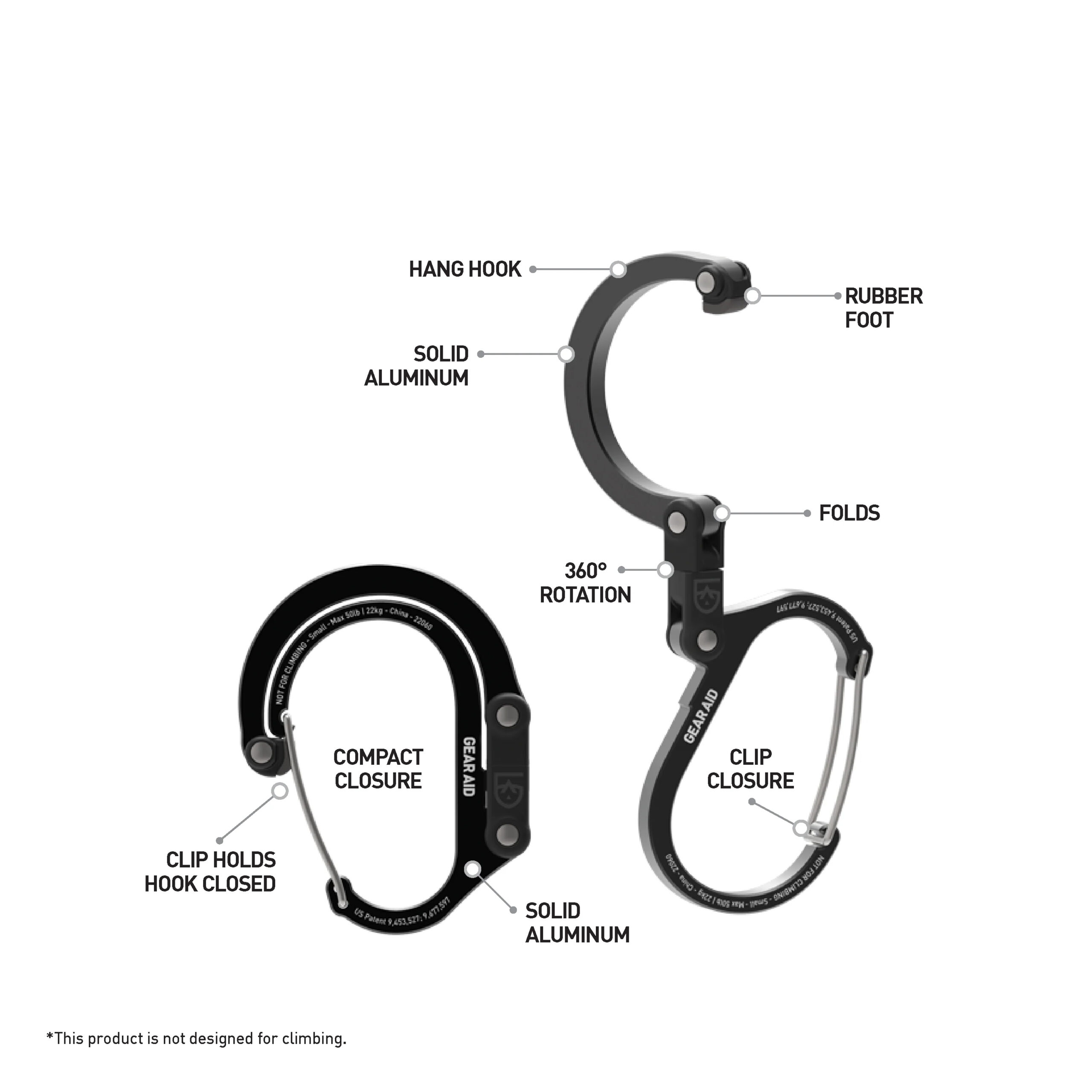 - Nhỏ gọn : Các ổ móc có thể gập lại trên Heroclip cho đến khi cần thiết.