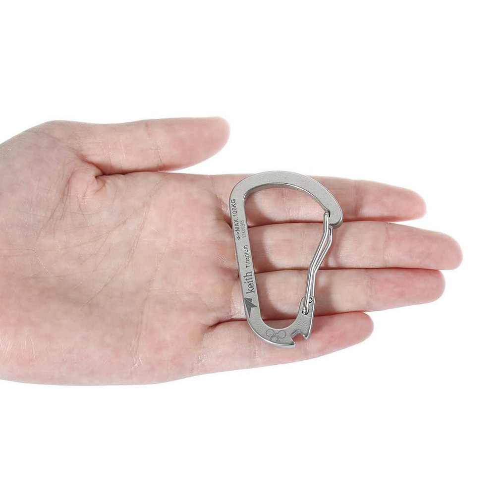 Móc khóa carabiner bằng titanium Keith Ti1152 có khả năng chịu tải dọc tối đa 100 kg và trọng lượng nhẹ.