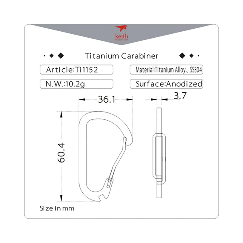 Thông số kỹ thuật Móc khóa Keith Titanium Ti1152