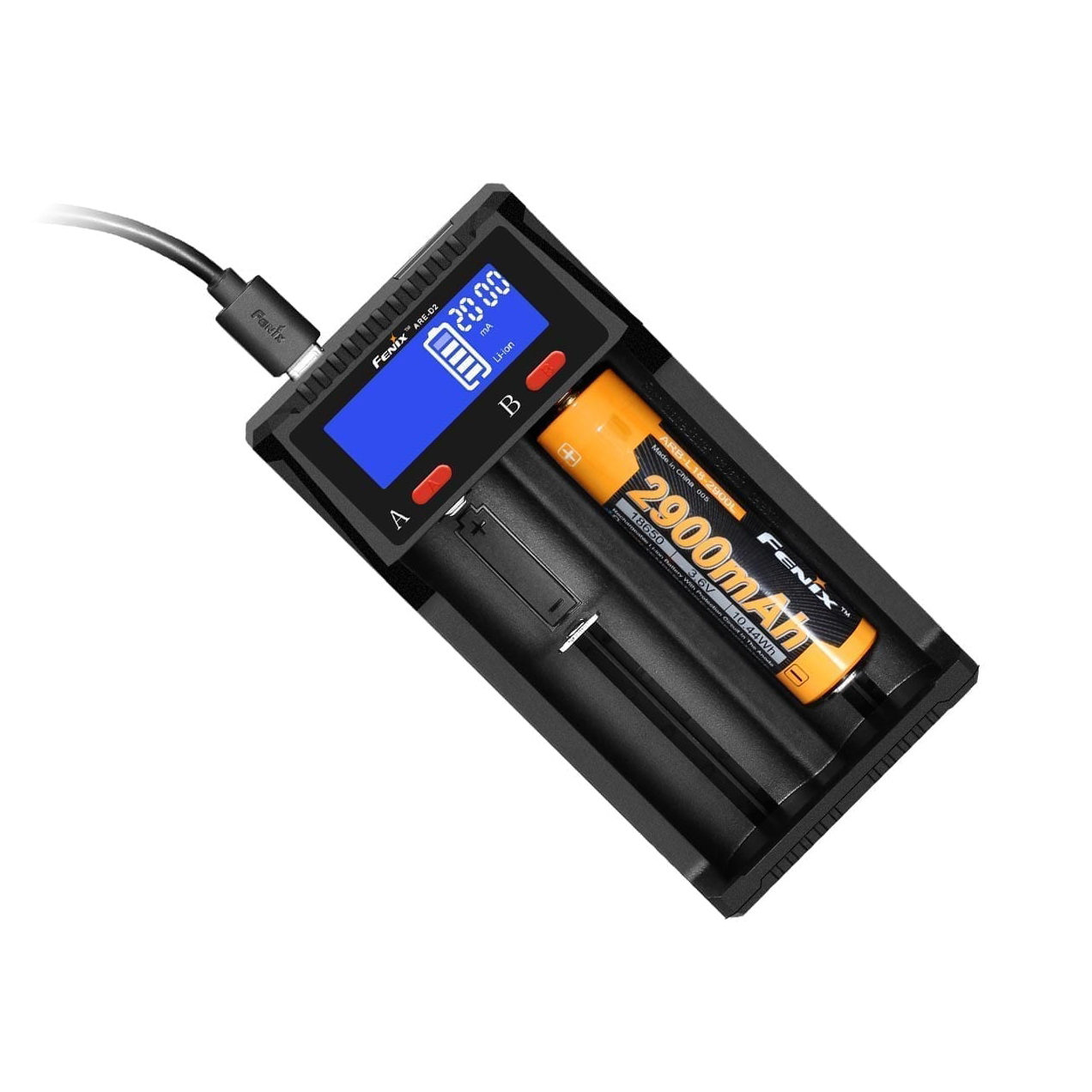 Bộ sạc FENIX ARE-D2 là bộ sạc thông minh hai kênh, được chế tạo cho nhiều loại pin với kích thước khác nhau, cho dù đó là Li-ion, Ni-MH hay Ni-Cd. Hỗ trợ sạc bằng cáp Micro USB với dòng sạc tổng là 2A, giúp sạc nhanh hơn và xả ở đầu USB để sạc cho các thiết bị khác. Màn hình LCD độ nét cao hiển thị rõ ràng trạng thái sạc, xả và pin. Bộ sạc cũng bao gồm nhiều mạch bảo vệ tích hợp để bảo vệ chống ngắn mạch, quá dòng, quá áp và điện áp ngược.