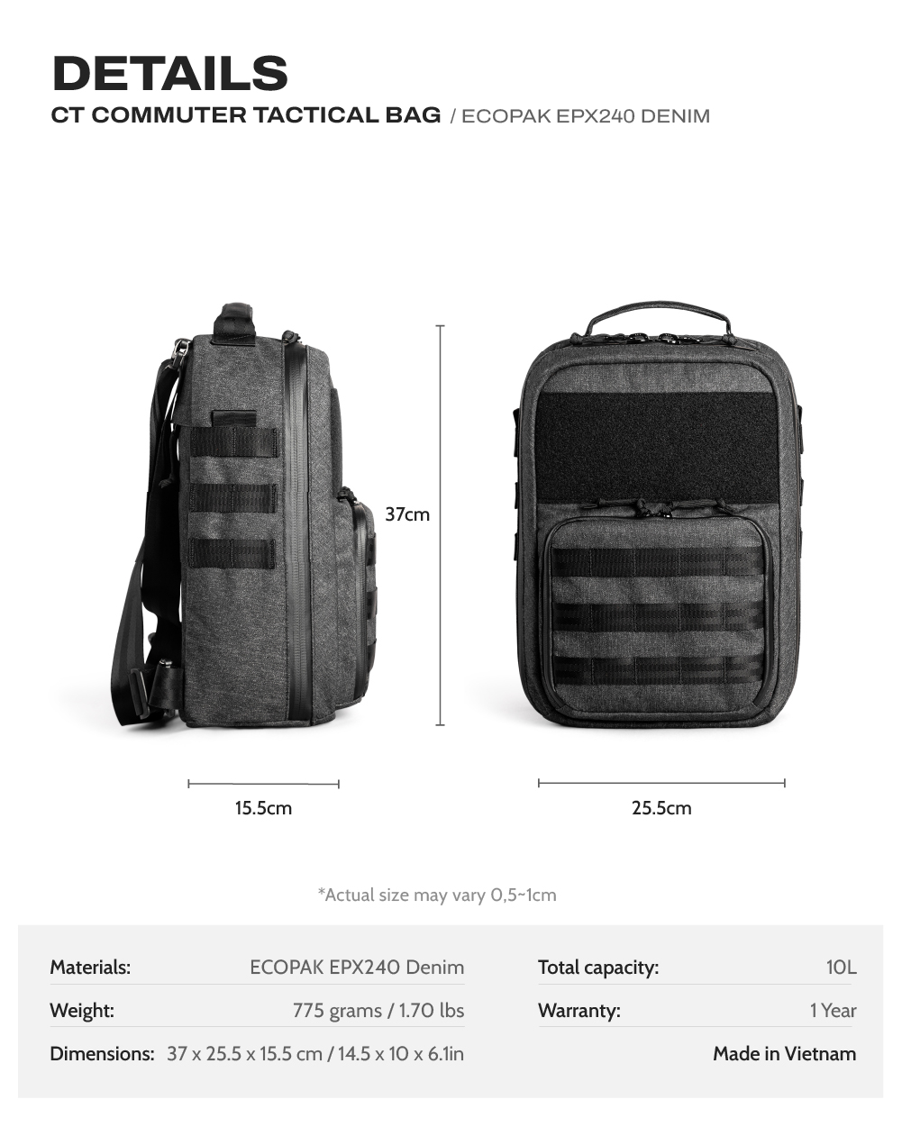 - Vải lót N210D Gridstop Dyneema màu sắc tương phản, dễ dàng nhận diện phụ kiện ngay cả khi ở trong điều kiện thiếu sáng.