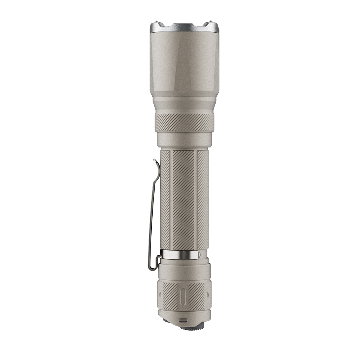 Toàn bộ thân đèn được gia công chính xác với các rãnh chống trượt sâu, bám tay cực tốt kể cả khi thao tác với găng tay, mồ hôi hoặc trong điều kiện ẩm ướt. Phần đầu đèn có rãnh chống lăn và tản nhiệt giúp giữ đèn mát và ổn định khi đặt trên mặt phẳng.