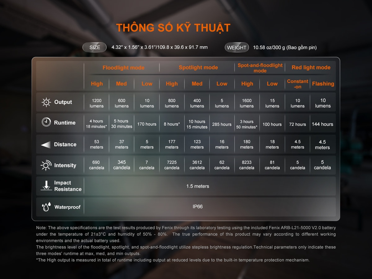 Độ sáng tối đa: 1600 lumens